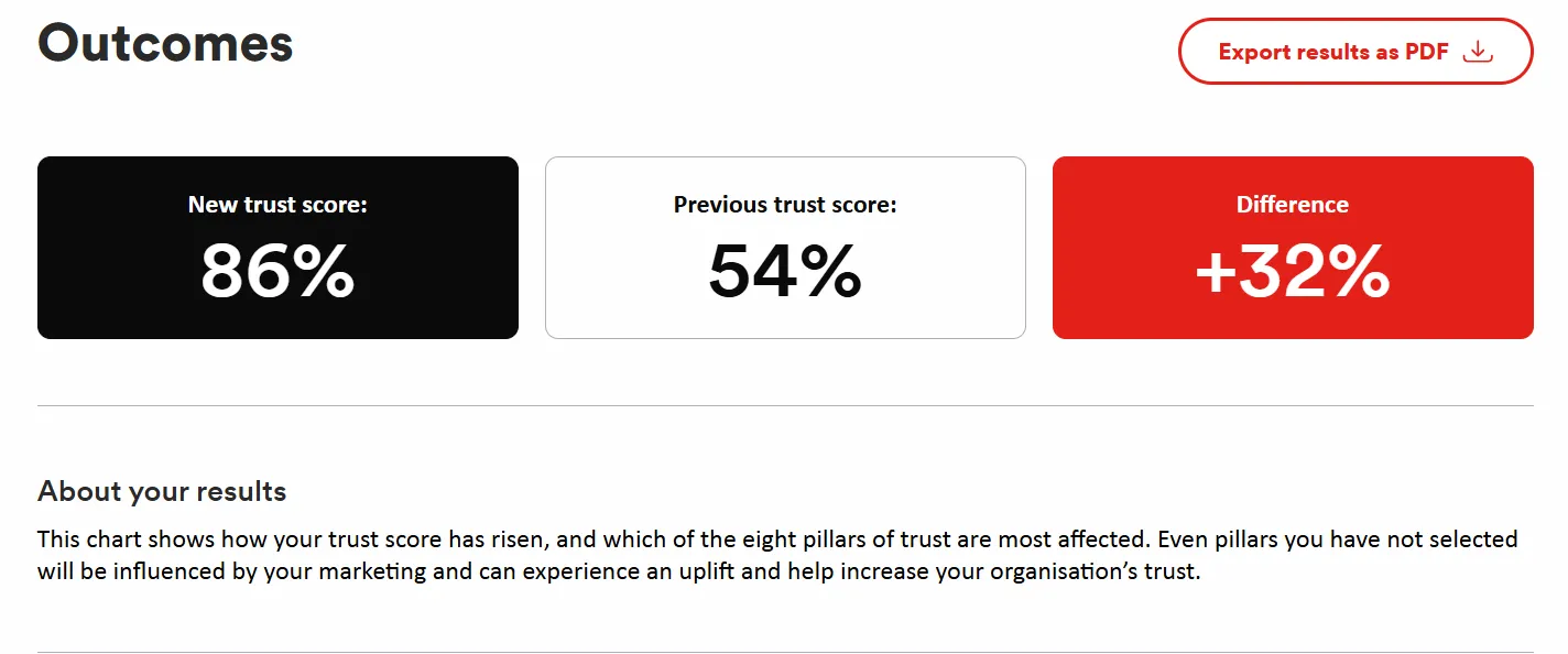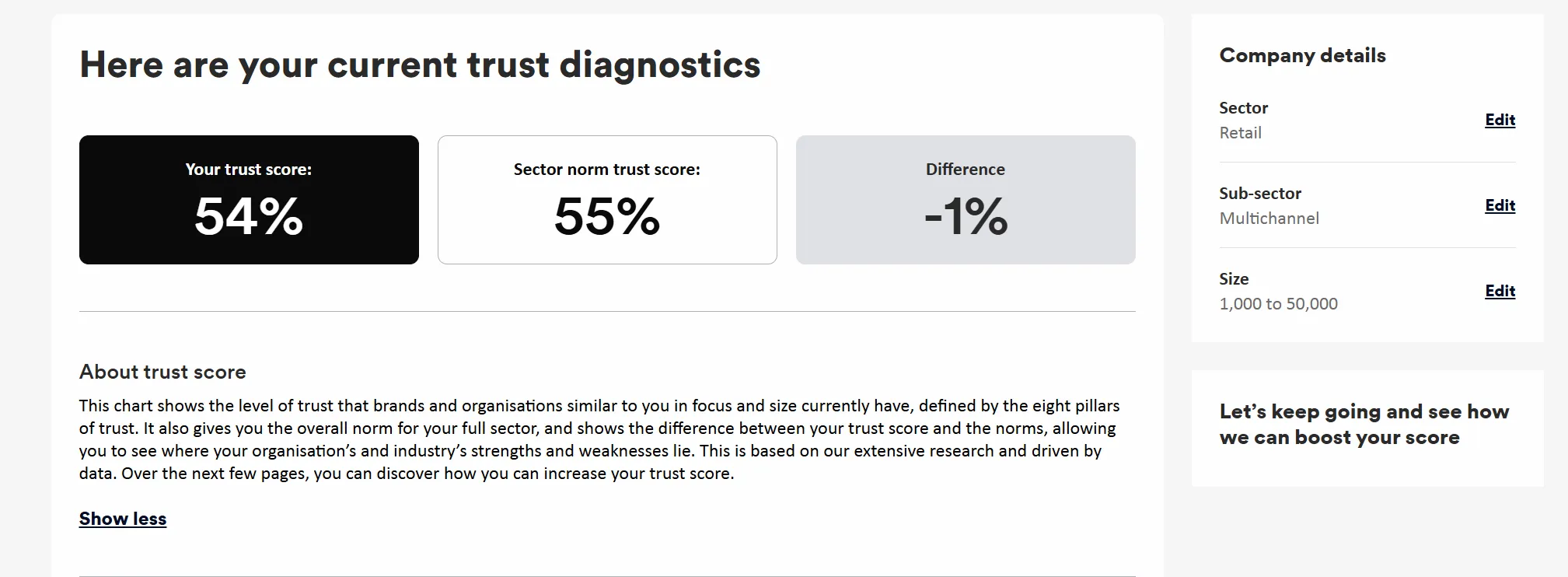 Marketers can establish a baseline level of trust in their organisation given their sector and size, and then determine their chosen marketing objective from a menu including: